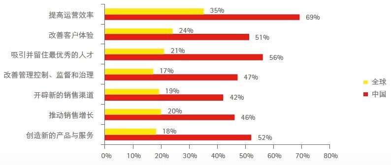 企业需要的数据在哪里,怎么获得,有什么应用场景可以发挥数据的最大价值,这些都是企业关心的问题。以现在实际情况看,要想解决这个问题,就必须从数据采集、数据加工和数据应用多角度入手。然而,这些角度正是现今企业所面临的重要课题。埃森哲早在2014年对全球1,041位首席高管的调查数据显示,数字时代的价值体现首要任务还是提高运营效率,其次是改善用户体验,而他们关心的技术难题也如下图所示: