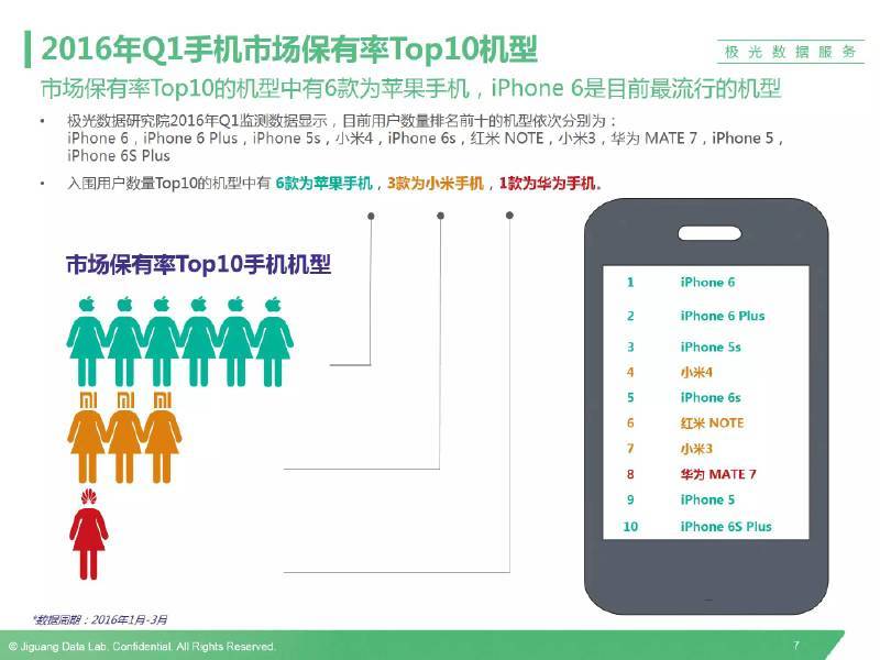 •极光数据研究院2016年Q1监测数据显示,2016年Q1销量Top1机型为iPhone 6